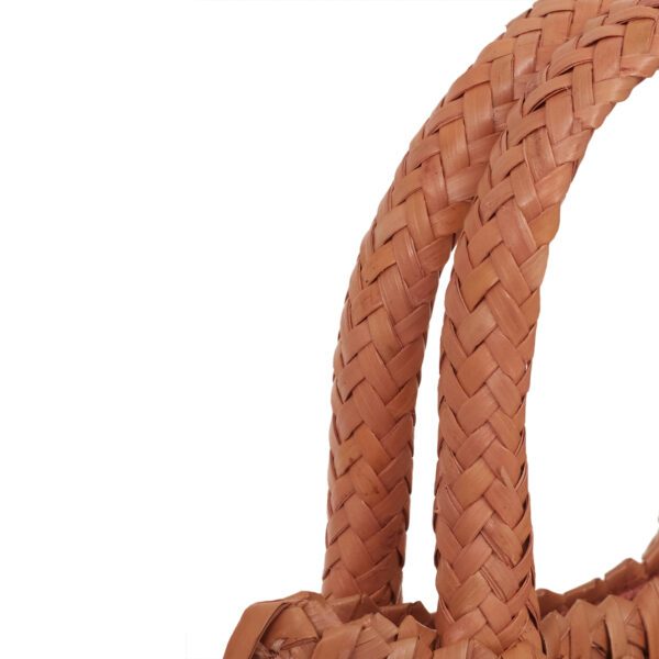 As tramas da nossa bag de palha são feitas  com palhas de Paiçava, uma palmeira tipicamente brasileira, oriundos de grupos de artesãs da Bahia.