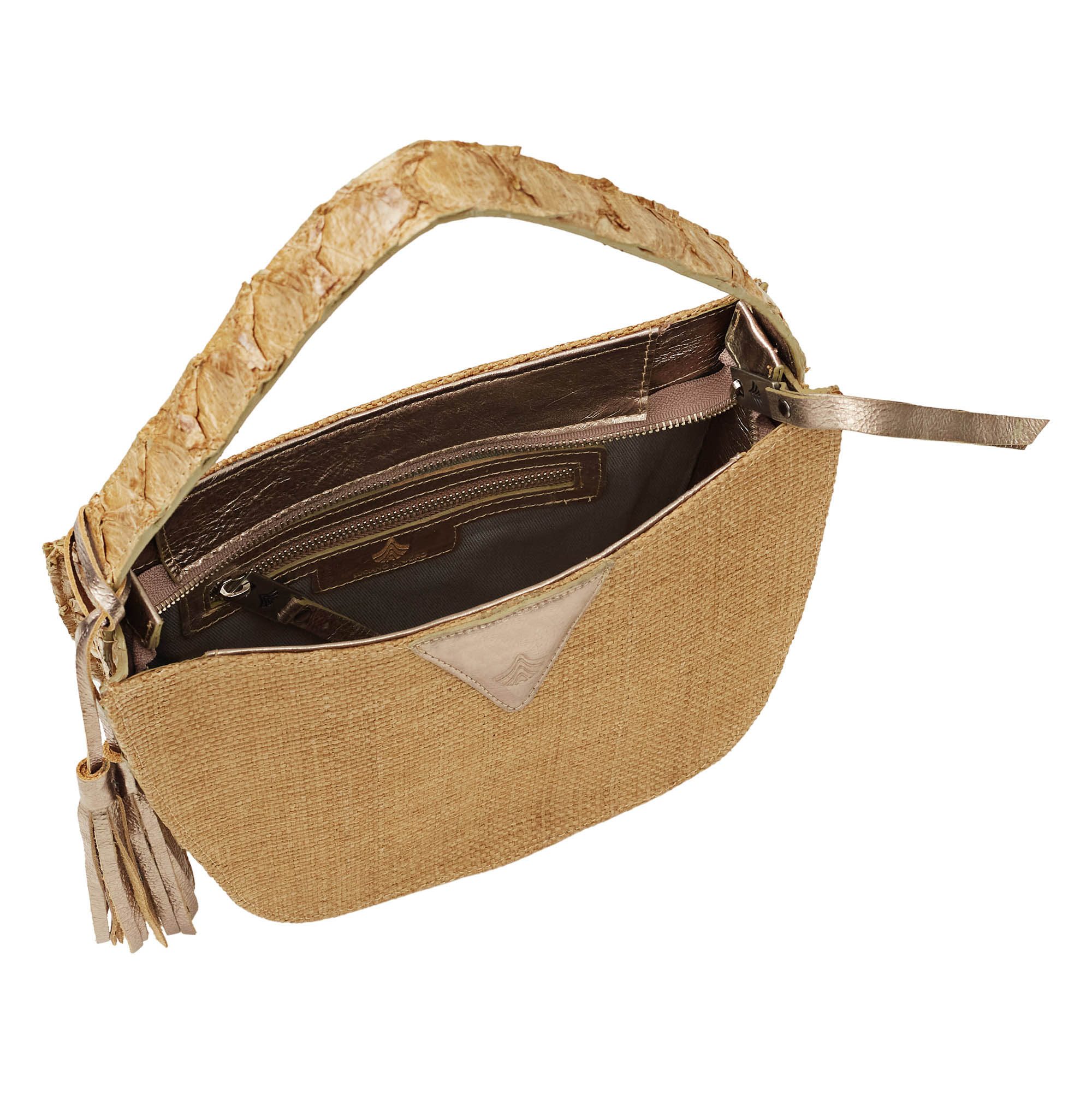 Bolsa Hobo Proa Artesanal – Bege e Dourado
