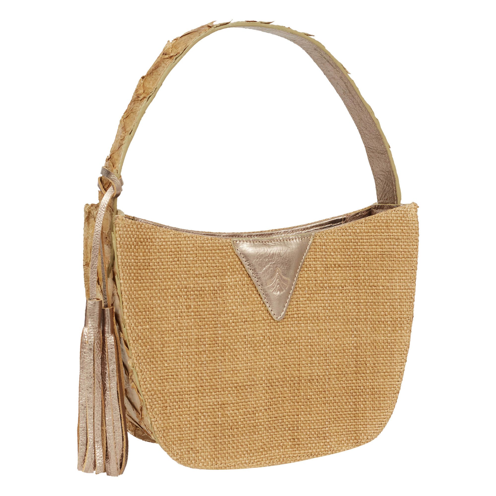 A Bolsa Hobo Proa Artesanal é a união da elegância natural com o artesanato autoral elevado. Seu design de meia-lua em palhas de Sedas orgânicas é complementado por uma alça e detalhes em couro de Pirarucu premium, conferindo uma sofisticação orgânica O design é inspirado nos cascos de barcos brasileiros. Uma peça que exalta a exclusividade do feito à mão, ideal para quem busca luxo consciente e autenticidade.