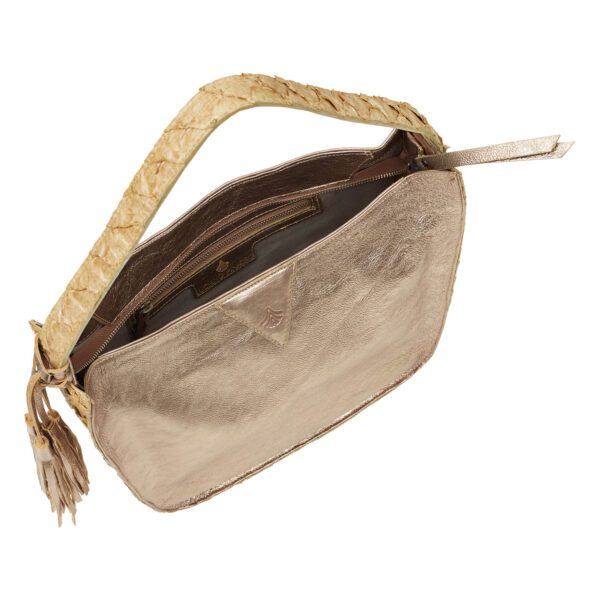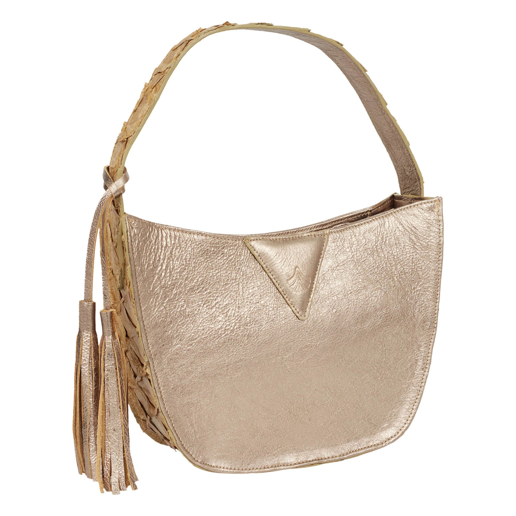 A Bolsa Hobo Proa é a união da elegância natural com o artesanato autoral elevado. Seu design de meia-lua em couro  é complementado pelo imponente fole (lateral) e alças largas em couro macio de Pirarucu, conferindo uma sofisticação orgânica. O design é inspirado nos cascos de barcos brasileiros. Uma peça que exalta a exclusividade do feito à mão, ideal para quem busca luxo consciente e autenticidade.