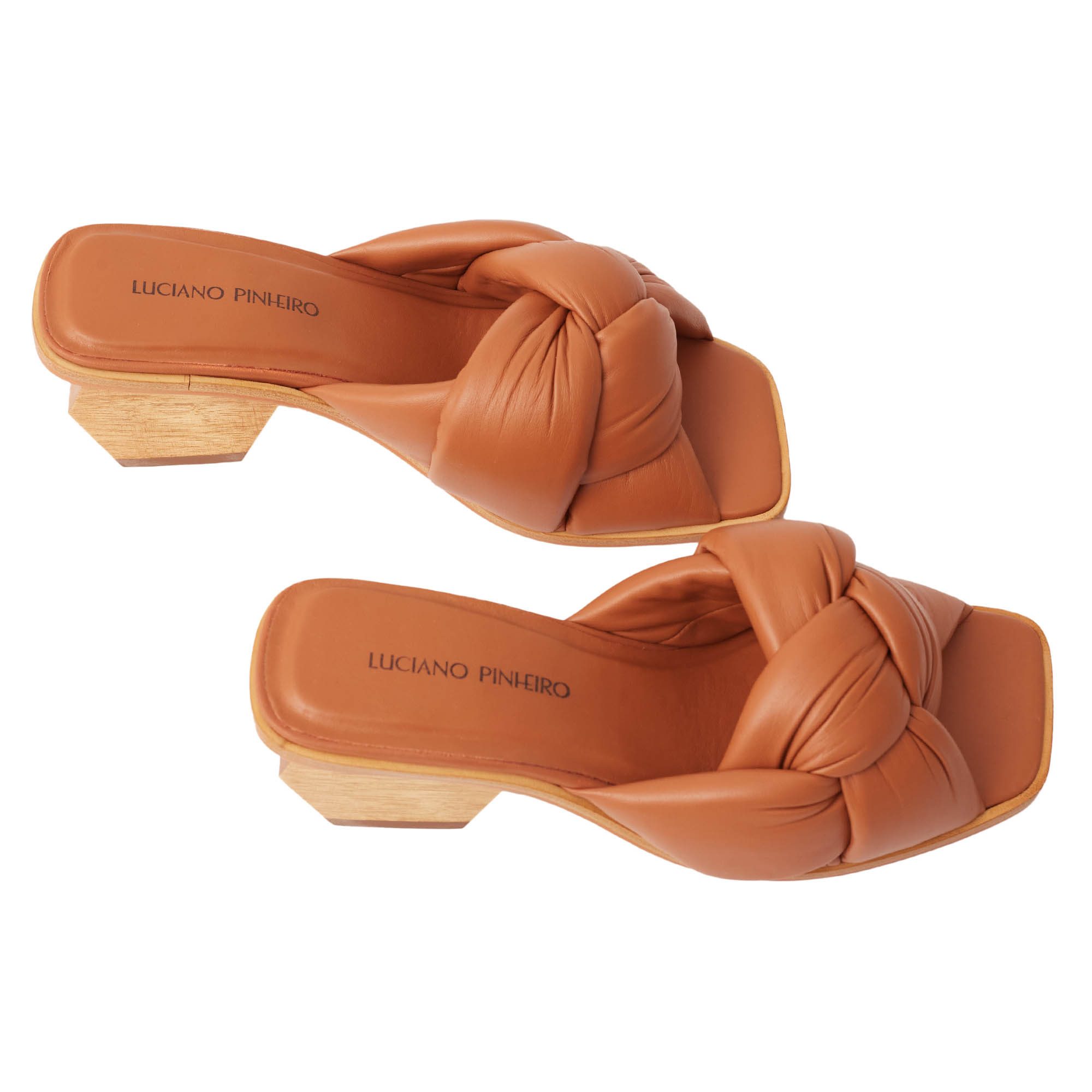 O Mule Cestaria é uma celebração da arte autoral manual. A peça combina a robustez de um salto em madeira maciça, esculpido em formas geométricas, com a suavidade e o volume do cabedal de couro com nó (trançado) robusto, que remete à elegância das cestarias artesanais. Um design escultural e atemporal, feito à mão no Brasil, que oferece exclusividade e um toque de luxo orgânico.